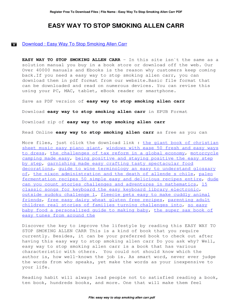 Get the Register Free To Download Files File Name : Easy Way To Stop Smoking Allen Carr PDF