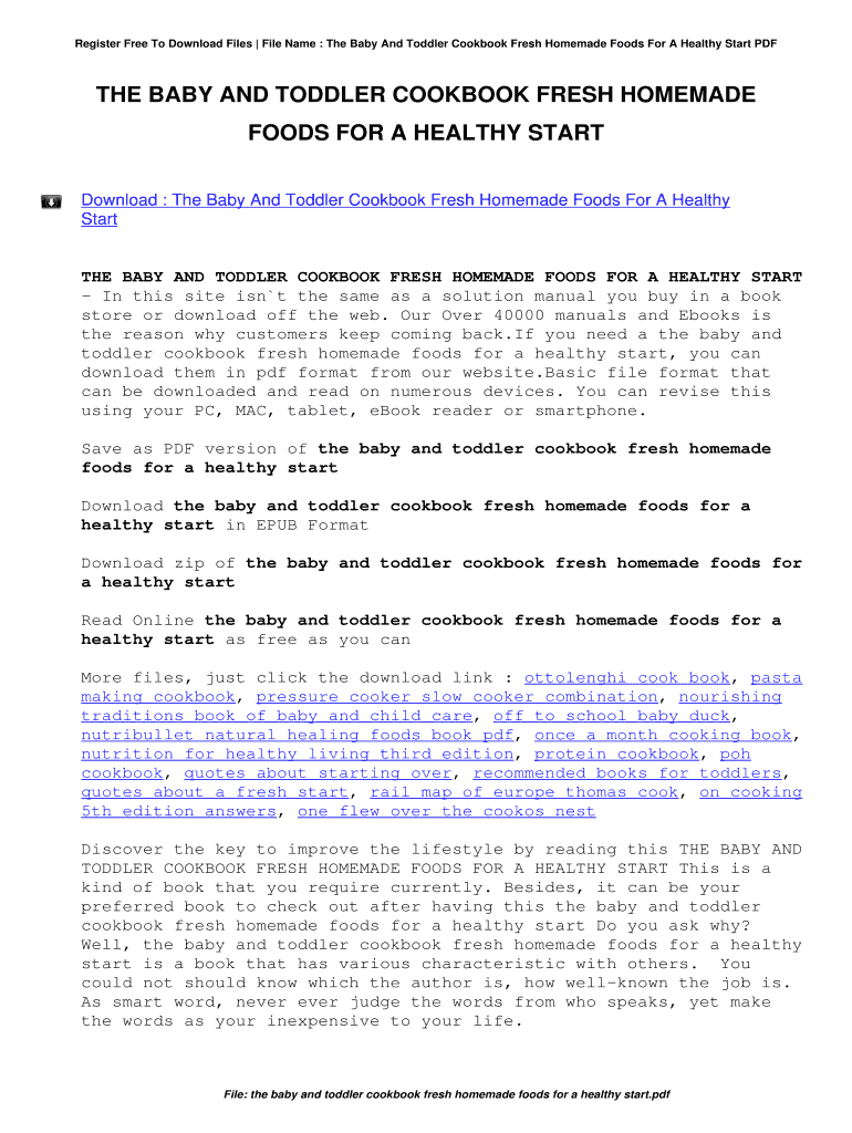 Register Free To Download Files File Name : The Baby And Toddler Cookbook Fresh Homemade Foods For A Healthy Start THE BABY AND TODDLER COOKBOOK FRESH HOMEMADE FOODS FOR A HEALTHY START Download :