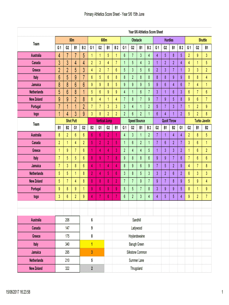 Get the free Primary Athletics Score Sheet - Year 5/6 15th June
