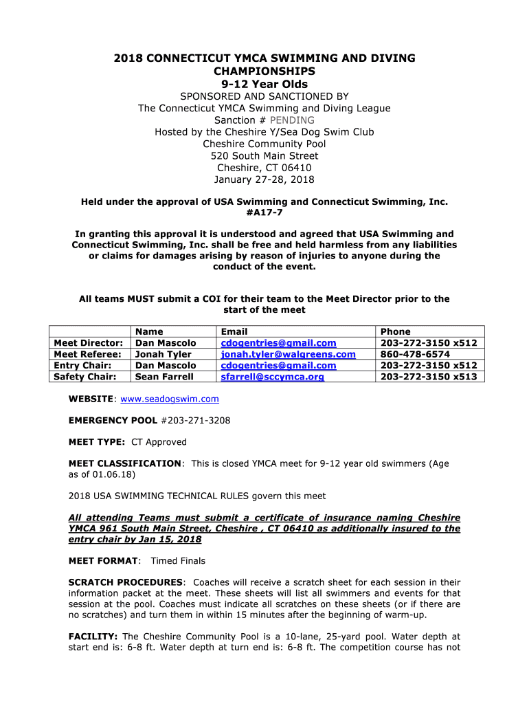 2018 CONNECTICUT YMCA SWIMMING AND DIVING