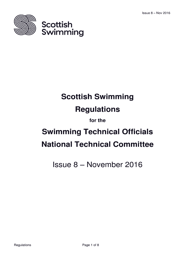 Issue 8 Nov 2016Scottish Swimming Regulations for swimming Technical Officials National Technical Committee Issue 8 November 2016RegulationsPage 1 of 8Scottish SwimmingSwimming Technical Officials