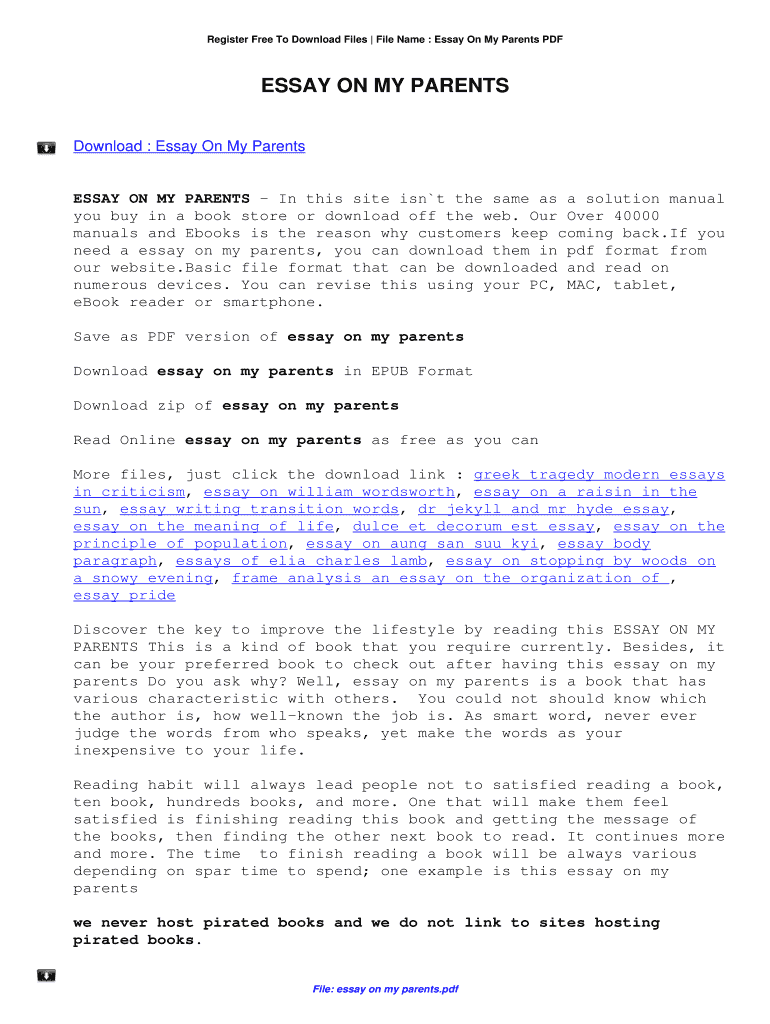 Register Free To Download Files File Name : Essay On My Parents ESSAY ON MY PARENTS Download : Essay On My ParentsESSAY ON MY PARENTS In this site isn't the same as a solution manual you buy in a