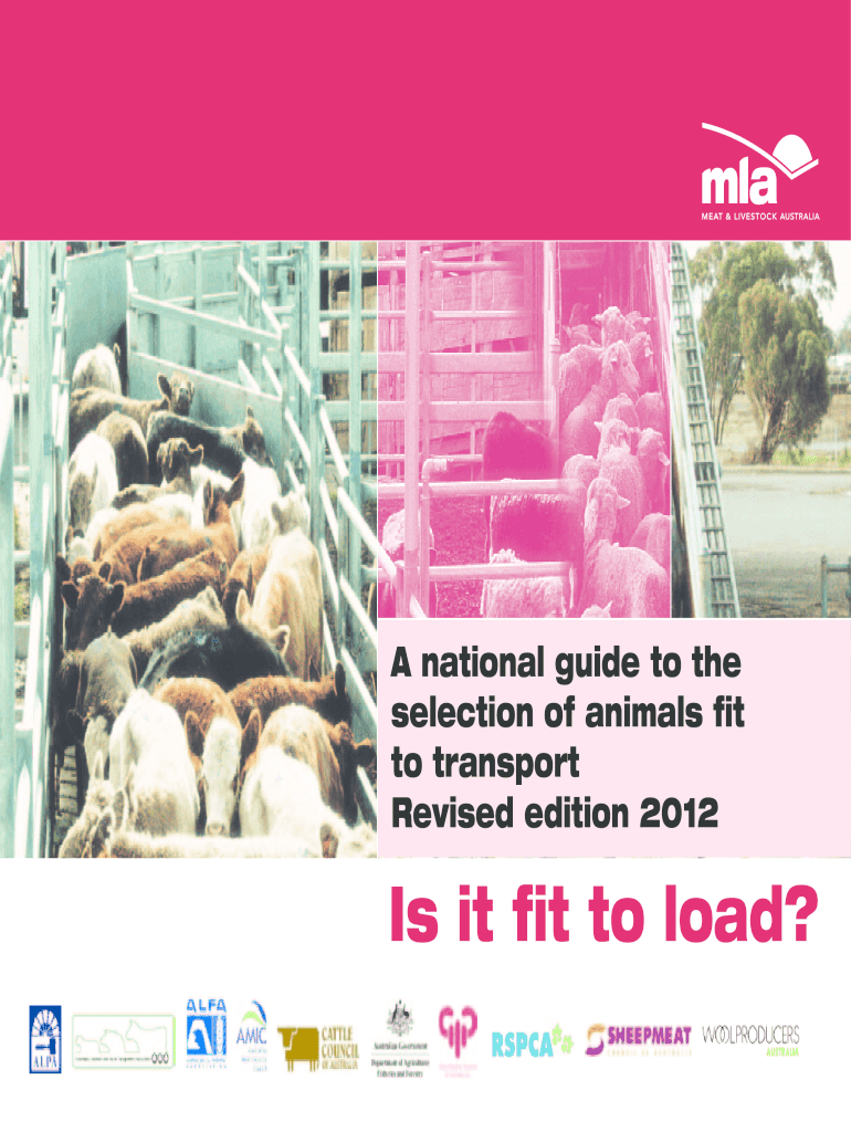 A national guide to the selection of animals fit to transport Revised edition 2012Is it fit to load? This national guide is endorsed by the below organizations: Australian Livestock & Property Agents