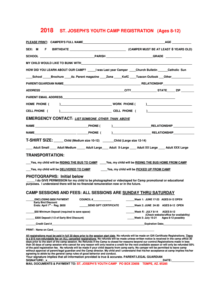 Edit your josephs youth camp registration form online