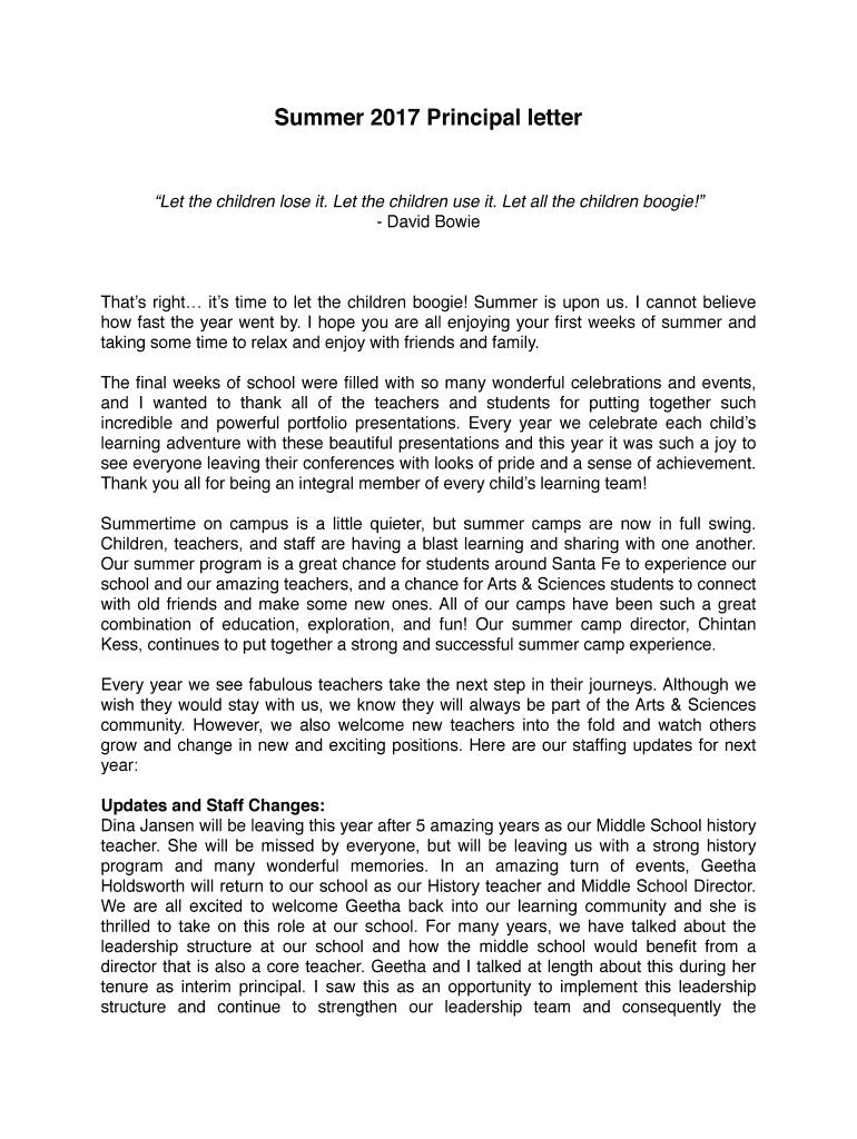 Summer 2017 Principal lettered the children lose it. Let the children use it. Let all the children boogie! David BowieThats right it's time to let the children boogie! Summer is upon us. I cannot