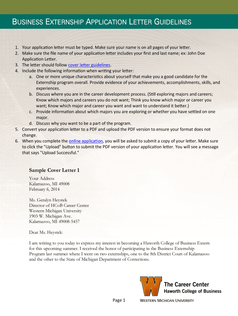 BUSINESS EXTERNSHIP APPLICATION LETTER GUIDELINES