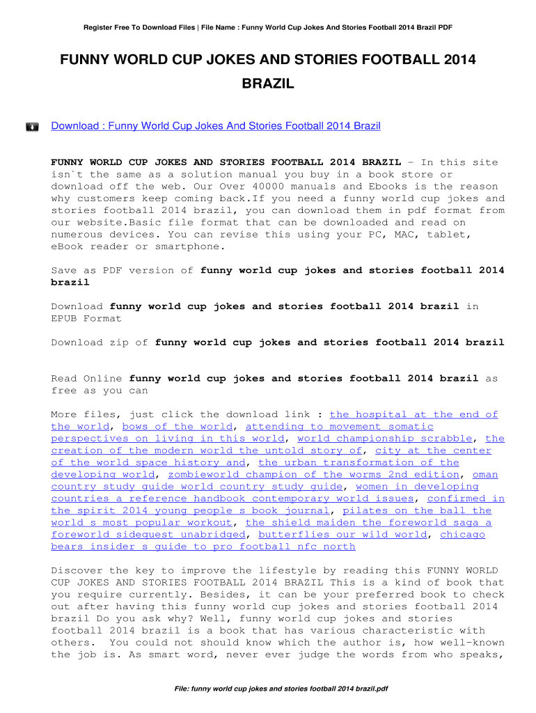 Register Free To Download Files File Name : Funny World Cup Jokes And Stories Football 2014 Brazil FUNNY WORLD CUP JOKES AND STORIES FOOTBALL 2014 BRAZIL Download : Funny World Cup Jokes And Stories