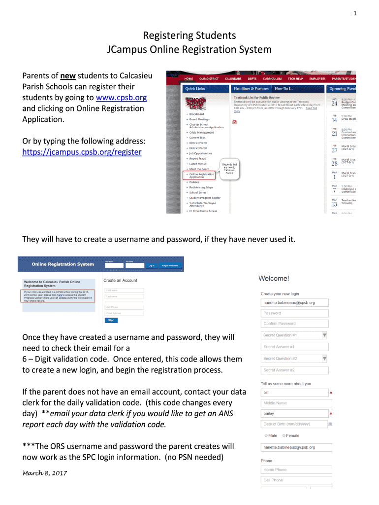 1Registering Students Campus Online Registration System Parents of new students to Calcasieu Parish Schools can register their students by going to www.cpsb.org and clicking on Online Registration