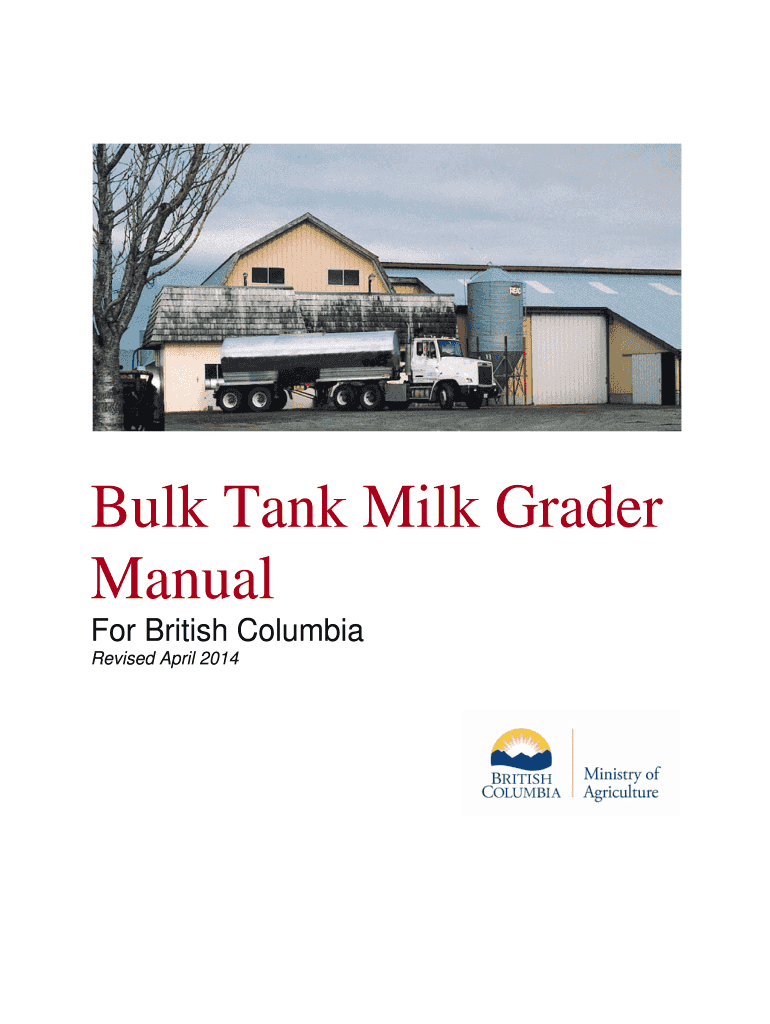 Columbia Bulk Tank Milk Grader Manual For British Columbia Revised April 2014 2 Acknowledgments ThismanualwaspreparedbytheBCMinistryofAgriculture, LivestockHealthManagementand RegulatoryUnitwithcontributionsbyBradnerMilkTransport,