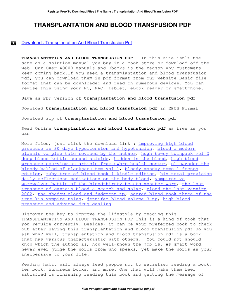 Get the Register Free To Download Files File Name : Transplantation And Blood Transfusion PDF