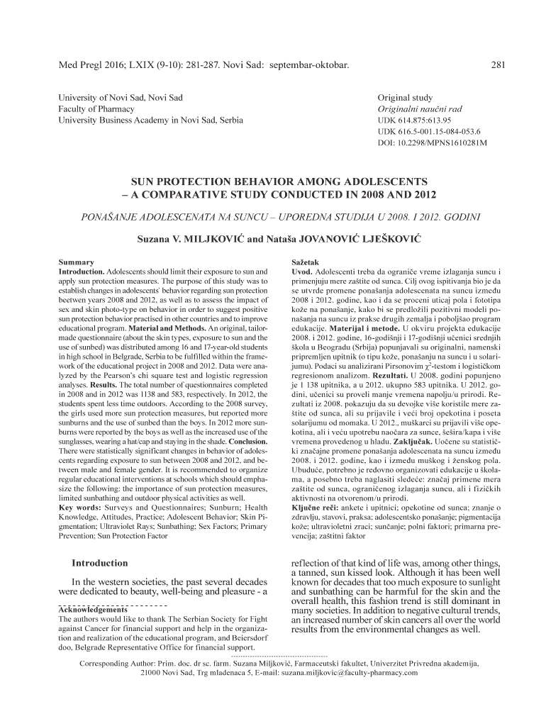 Med Real 2016; LXIX (910): 281287. Nova Sad: septembaroktobar. University of Nova Sad, Nova Faculty of PharmacyUniversity Business Academy in Nova Sad, Serbia281 Original study Original Nazi rad UK