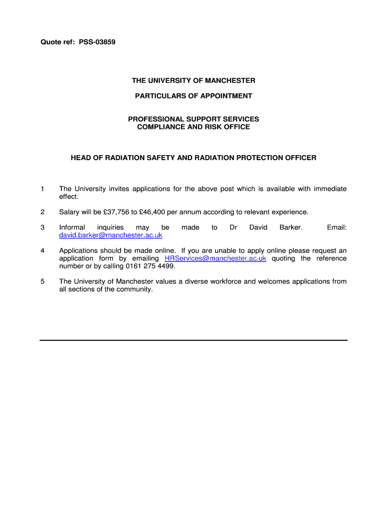 Quote ref: PSS03859THE UNIVERSITY OF MANCHESTER