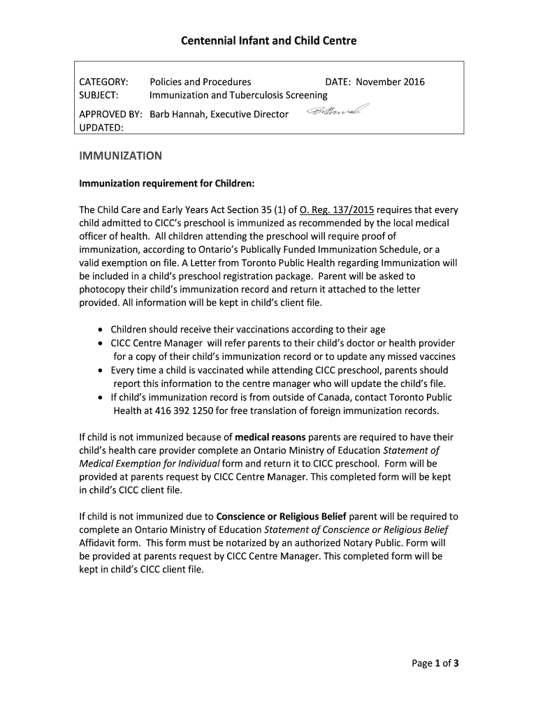 Immunization and Tuberculosis ScreeningAPPROVED BY: Barb Hannah, Executive Director