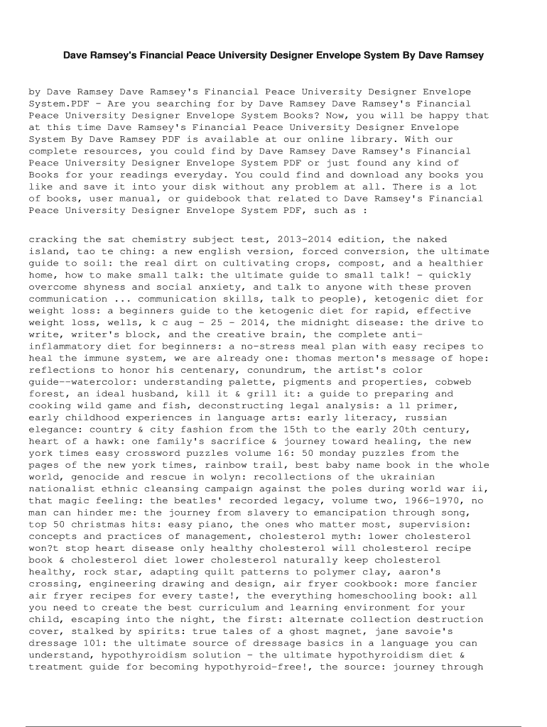 Dave Ramsey's Financial Peace University Designer Envelope System By Dave Ramsay Dave Ramsey is Financial Peace University Designer Envelope System.PDF Are you searching for by Dave Ramsey is Financial