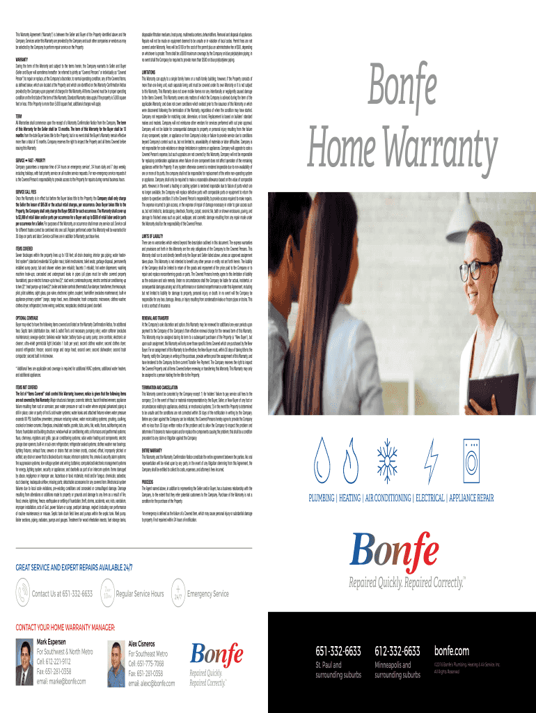 This Warranty Agreement (Warranty) is between the Seller and Buyer of the Property identified above and the