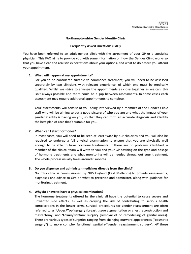 The Northamptonshire Gender Identity Clinic is for individuals who: