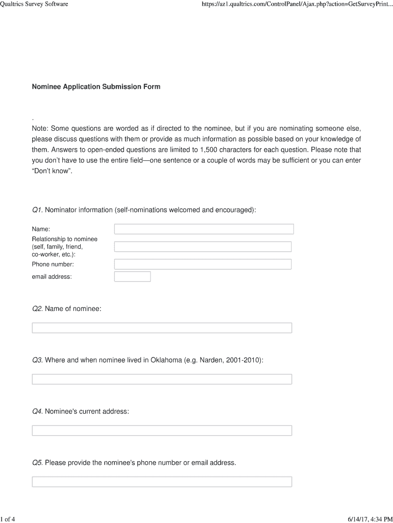 Qualtrics Survey Software1 of 4https://az1.qualtrics.com/ControlPanel/Ajax.php?actionGetSurveyPrint... Nominee Application Submission Form.