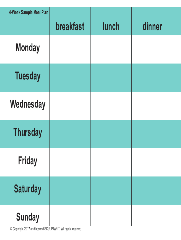Fill out your 4-week sample meal plan online with pdfFiller!
