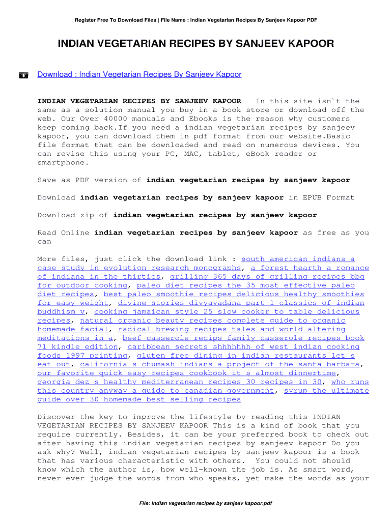 Register Free To Download Files File Name : Indian Vegetarian Recipes By Sanjeev Poor INDIAN VEGETARIAN RECIPES BY SANJEEV POOR Download : Indian Vegetarian Recipes By Sanjeev KapoorINDIAN VEGETARIAN
