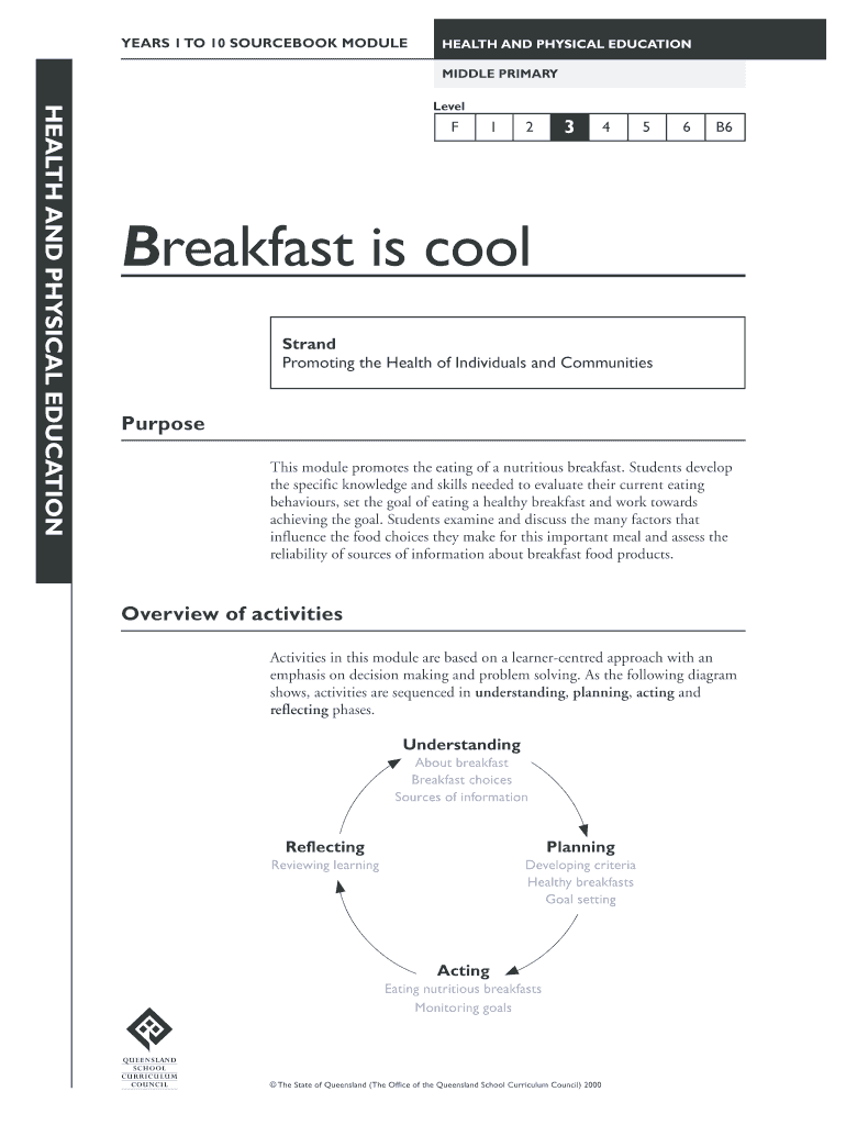 MIDDLE PRIMARYHEALTH AND PHYSICAL EDUCATIONLevelF123456B6Breakfast is cool
