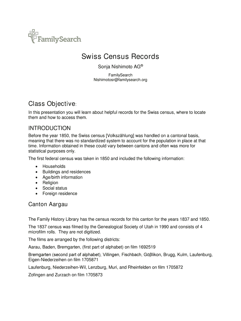 Swiss Census Records Sonja Hashimoto AG FamilySearch Nishimotosr family search. Outclass Objective: In this presentation you will learn about helpful records for the Swiss census, where to locate