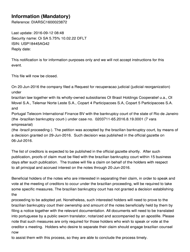 Security name: Oi SA 5.75× 10.02.22 DOLT