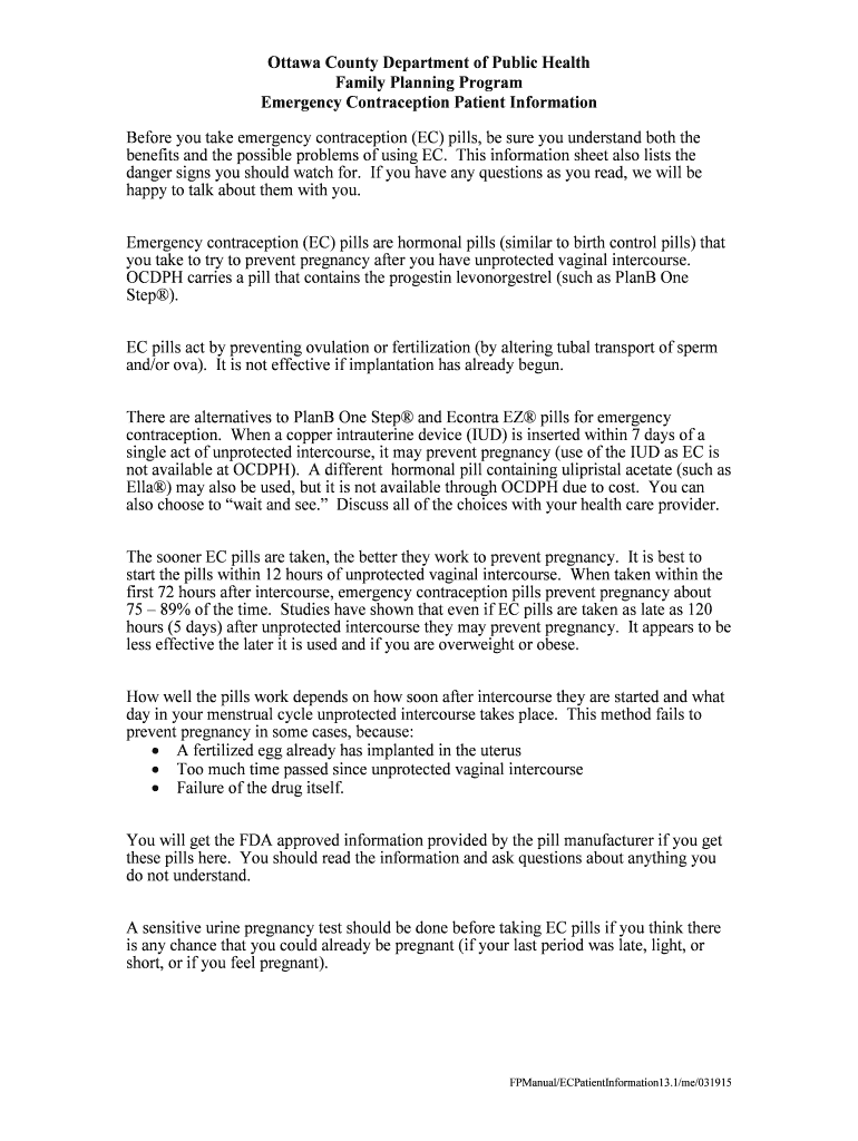 Get the free Emergency Contraception Patient Information