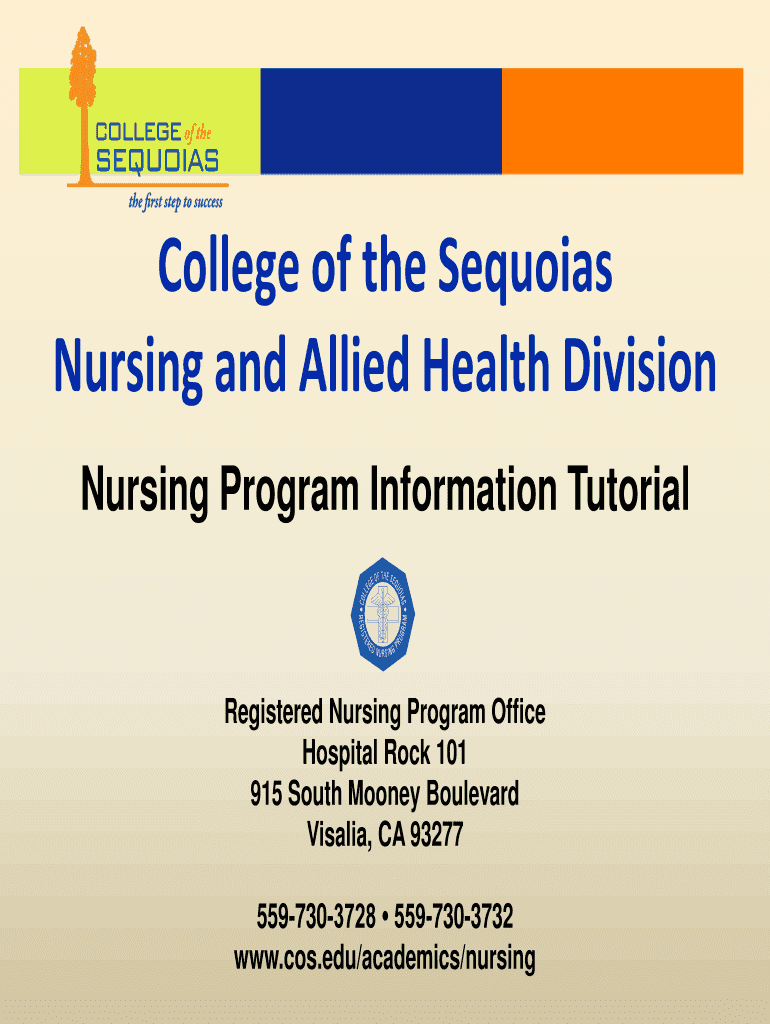 College of the Sequoias Nursing and Allied Health Division Nursing Program Information TutorialRegistered Nursing Program Office Hospital Rock 101 915 South Mooney Boulevard Visalia, CA 93277 5597303728