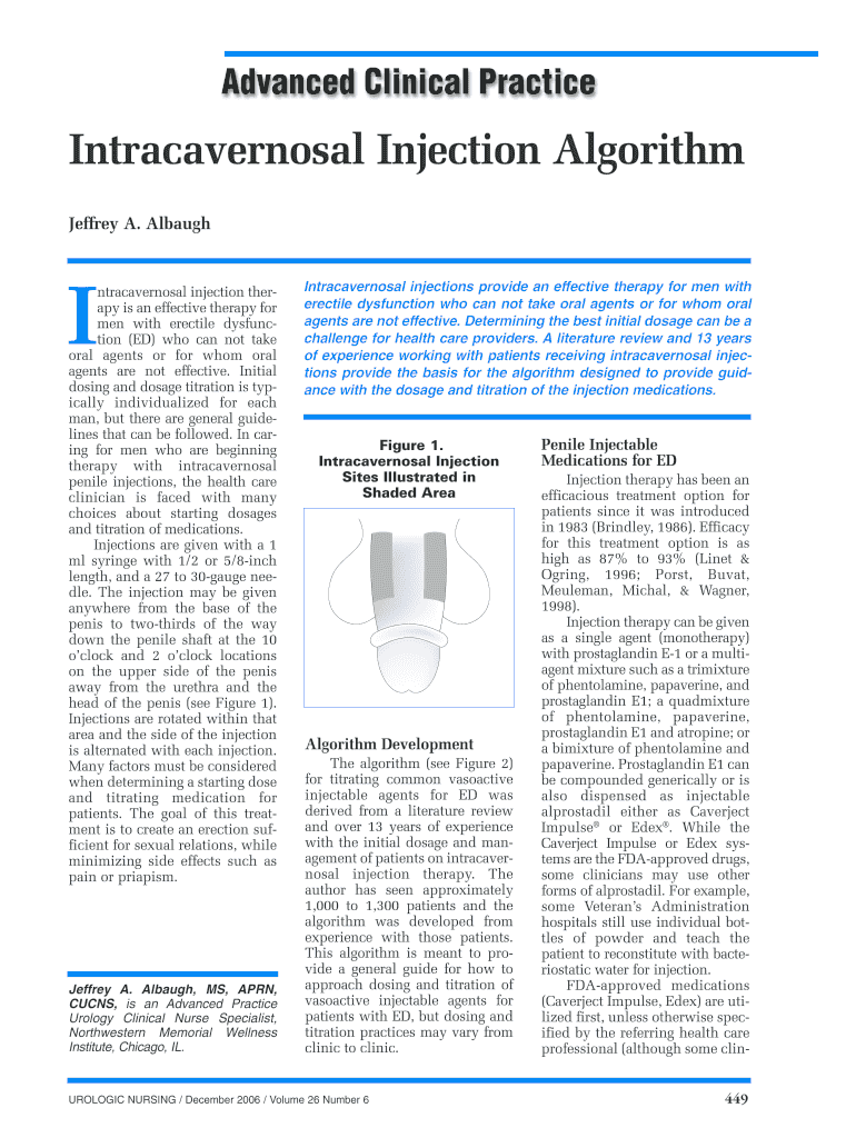 Jeffrey A. AlbaughIntracavernosal injection therapy is an effective therapy for