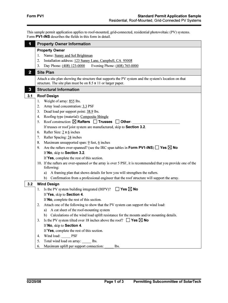 Homeowners and contractors looking to install residential solar photovoltaic systems in California are eligible to use the PV1 Standard Permit Application.