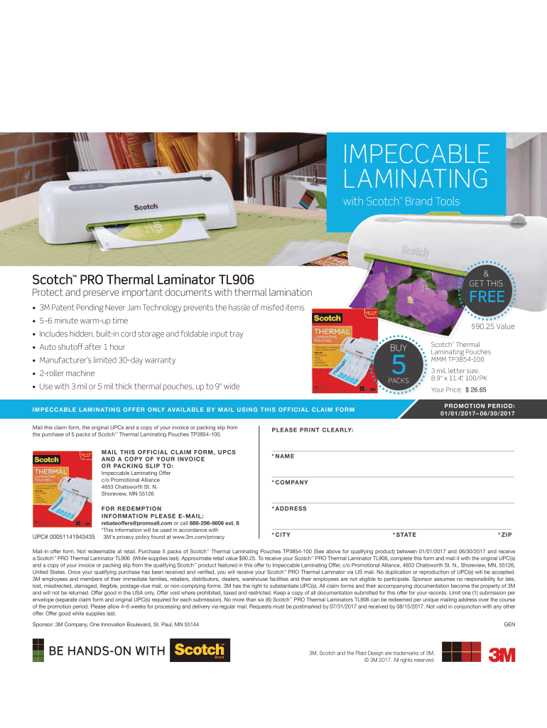 IMPECCABLE LAMINATING with Scotch Brand Tools GET THIS Scotch PRO Thermal Laminator TL906Protect and preserve important documents with thermal laminationFREE 3M Patent Pending Never Jam Technology