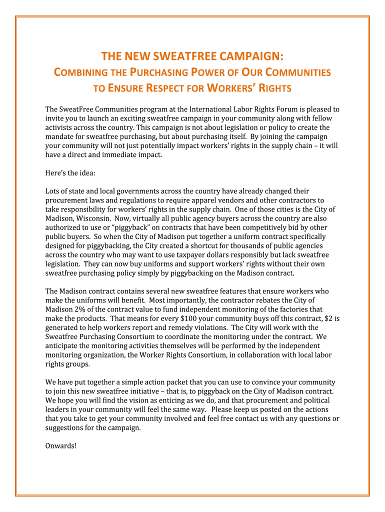 The Sweater Communities program at the International Labor Rights Forum is pleased
