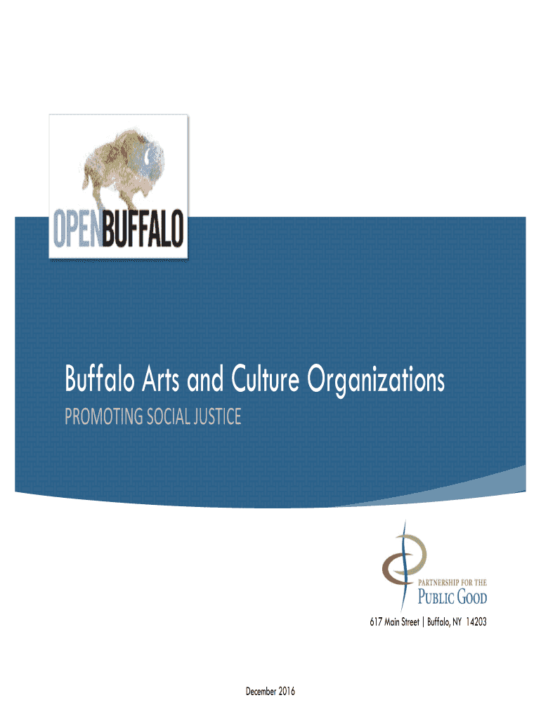 Buffalo Arts and Culture Organizations PROMOTING SOCIAL JUSTICE617 Main Street Buffalo, NY 14203December 2016Table of Contents Organizations Page numberAlbright Knox Art Gallery Anne Frank Project
