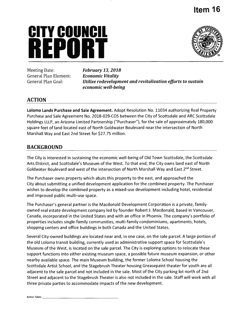 Item 16eirv CMNCiiREPORTMeeting Date; General Plan Element: General Plan Goal:February 13, 2018, Economic Vitality Utilize redevelopment and revitalization efforts to sustain economic wellbeingACTION