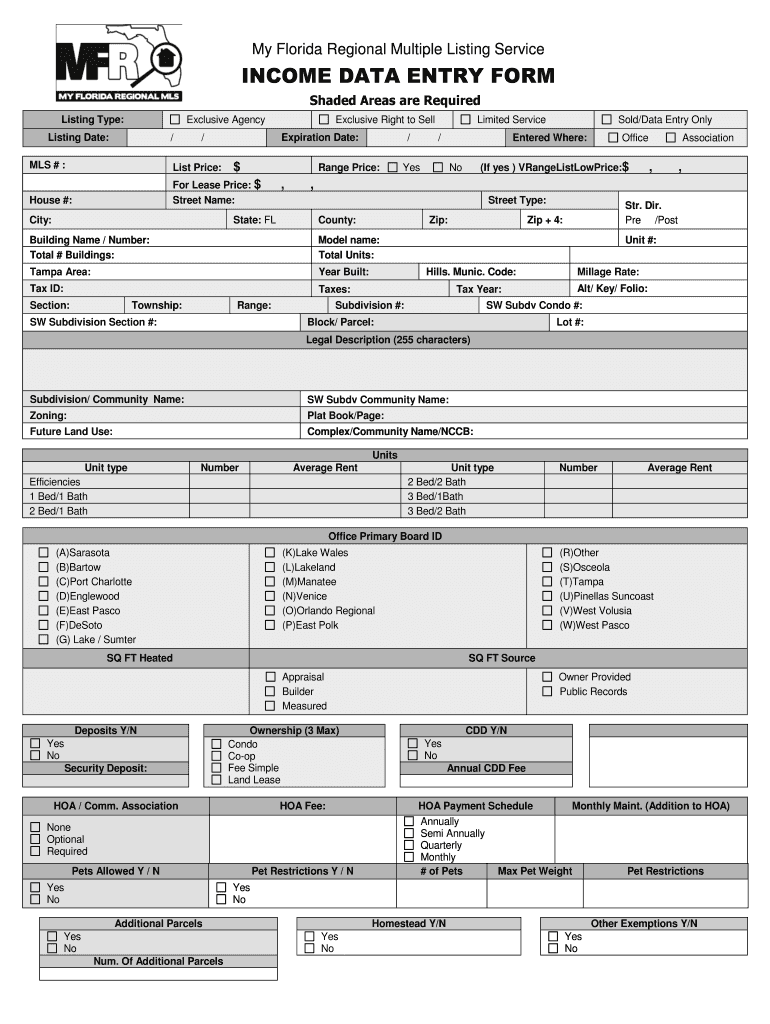 Get the free Florida Regional Multiple Listing Service Income Data Entry Form