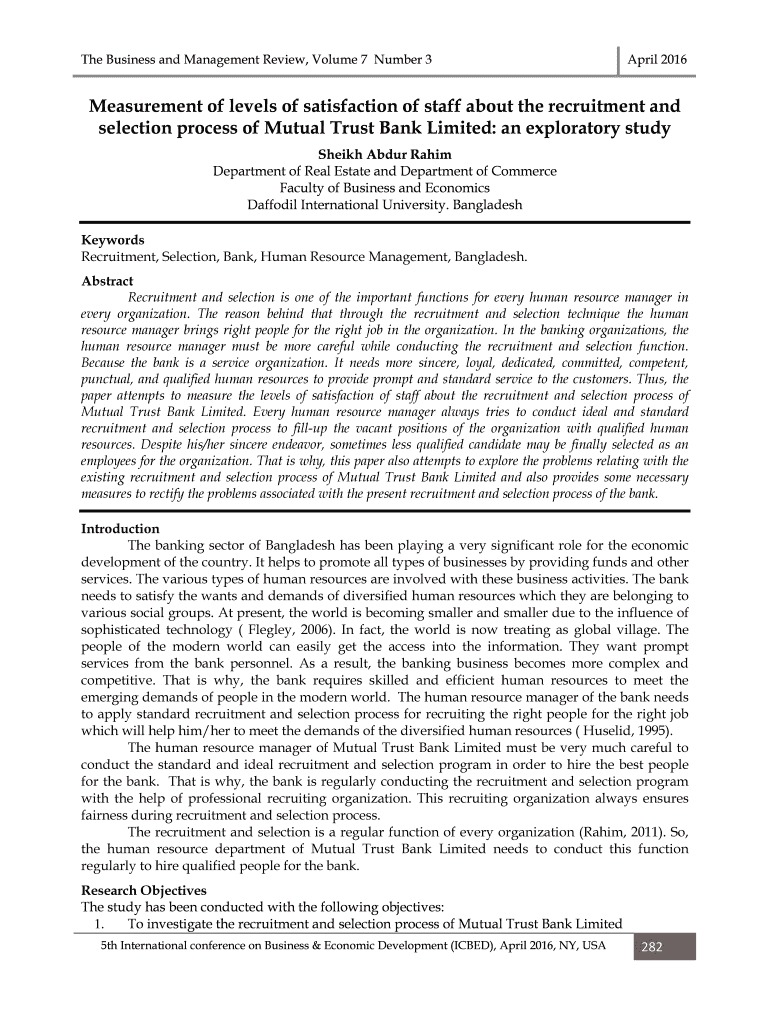 The Business and Management Review, Volume 7 Number 3April 2016Measurement of levels of satisfaction of staff about the recruitment and