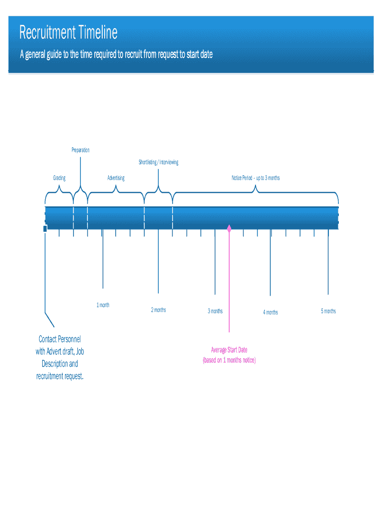 Recruitment Timeline A general guide to the time required to recruit from request to start datePreparation Shortlisting / Interviewing GradingAdvertising1 monthNotice Period up to 3 months2 months3