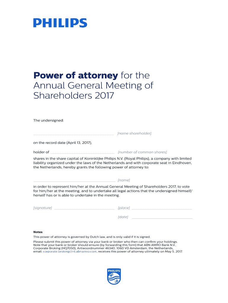 Power of attorney for the Annual General Meeting of Shareholders 2017 The undersigned: name shareholder on the record date (April 13, 2017), holder of number of common shares in the share capital
