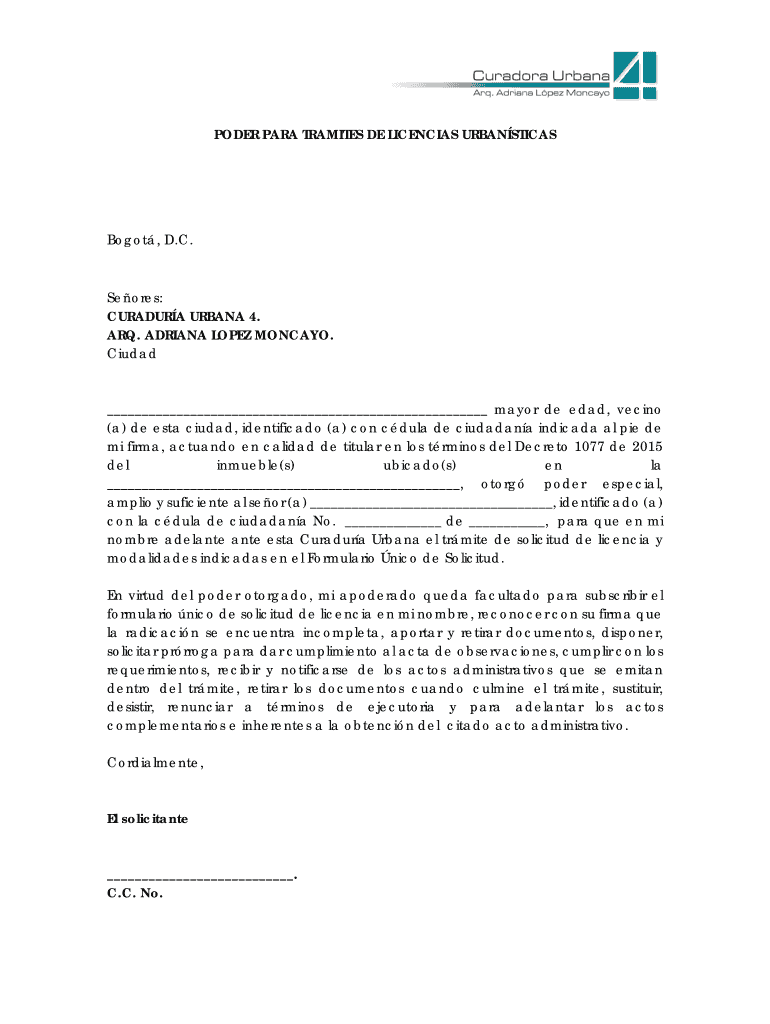 POWER PARA TRAM ITES DE LICENSES URBANSTICASBogot, D.C. Stores: CURATOR URBANA 4. ARQ. ADRIANA LOPEZ MONDAY. Ciudad mayor DE dead, vein (a) de ESTA Ciudad, identified (a) con could de Ciudad indicate