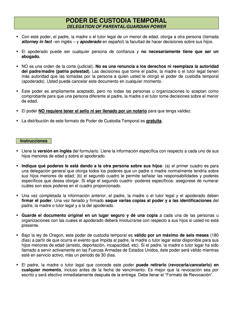 Poder de custodia temporal is a legal document granting temporary custody of a child to another person.