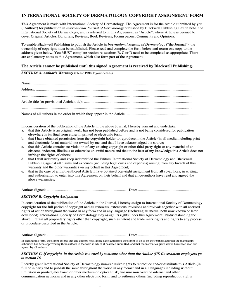 INTERNATIONAL SOCIETY OF DERMATOLOGY COPYRIGHT ASSIGNMENT From