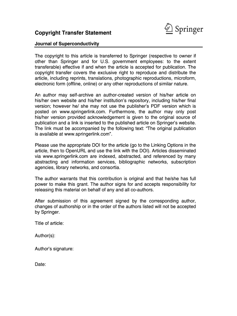 Get the free Journal of Superconductivity