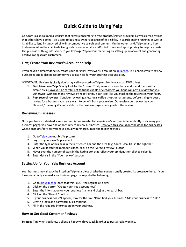 Quick Guide to Using Yelp.com is a social media website that allows consumers to rate product/service providers as well as read ratings