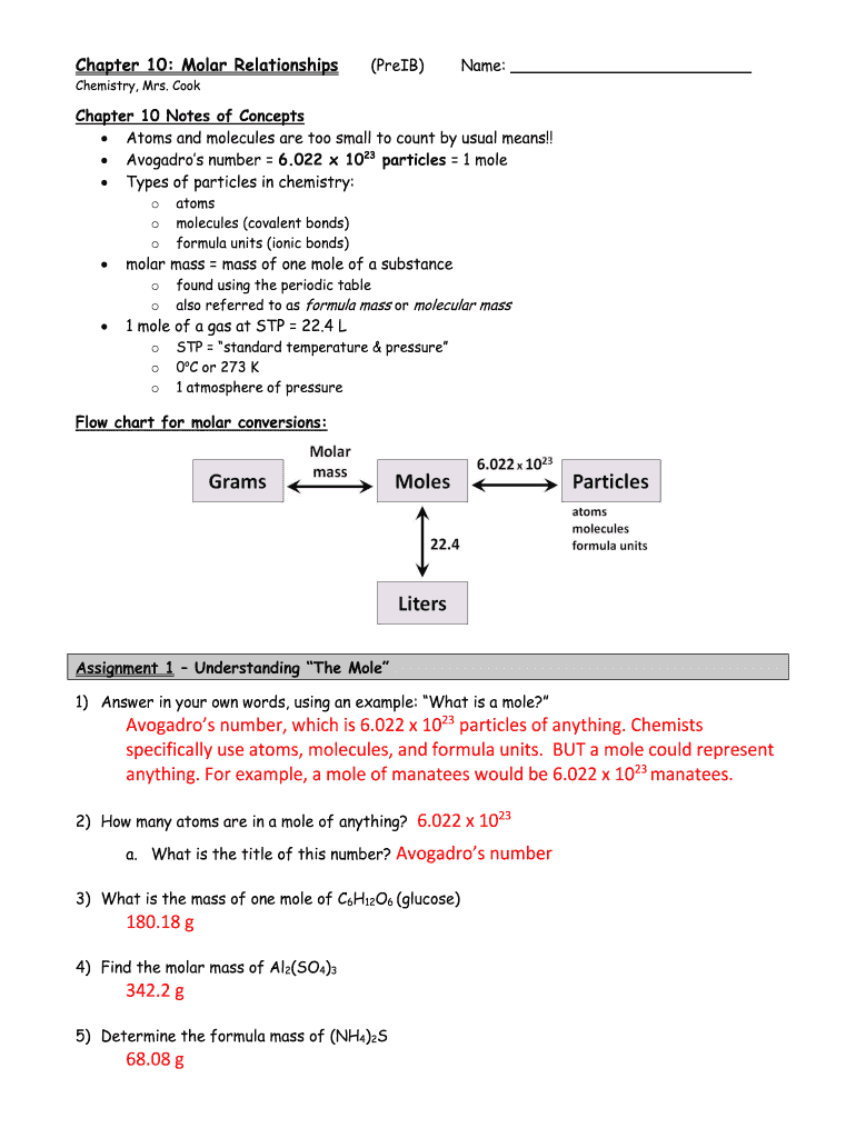How to fill out chapter 10 molar relationships