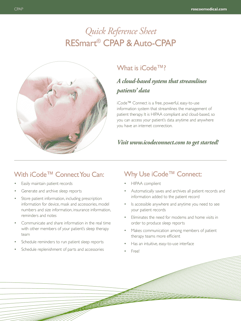 Roscoe medical.comCPAPQuick Reference Sheet Restart CPAP & Autocrat What is code? A cloud based system that streamlines patients data code Connect is a free, powerful, espouse information system that