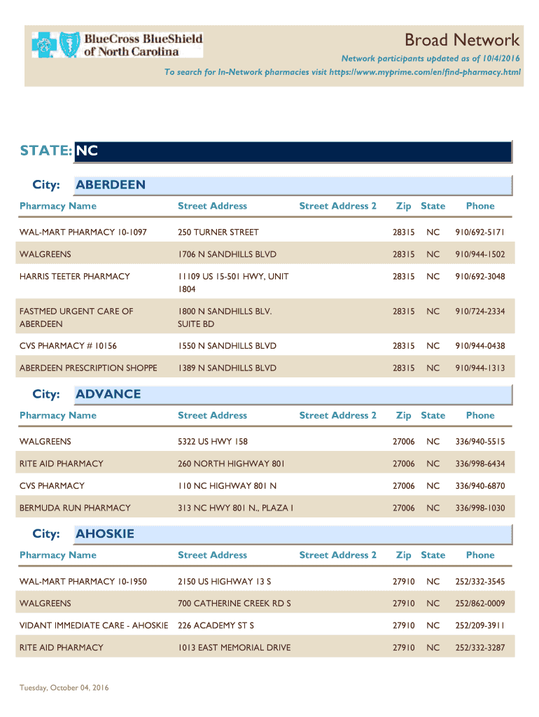 Broad Network participants updated as of 10/4/2016