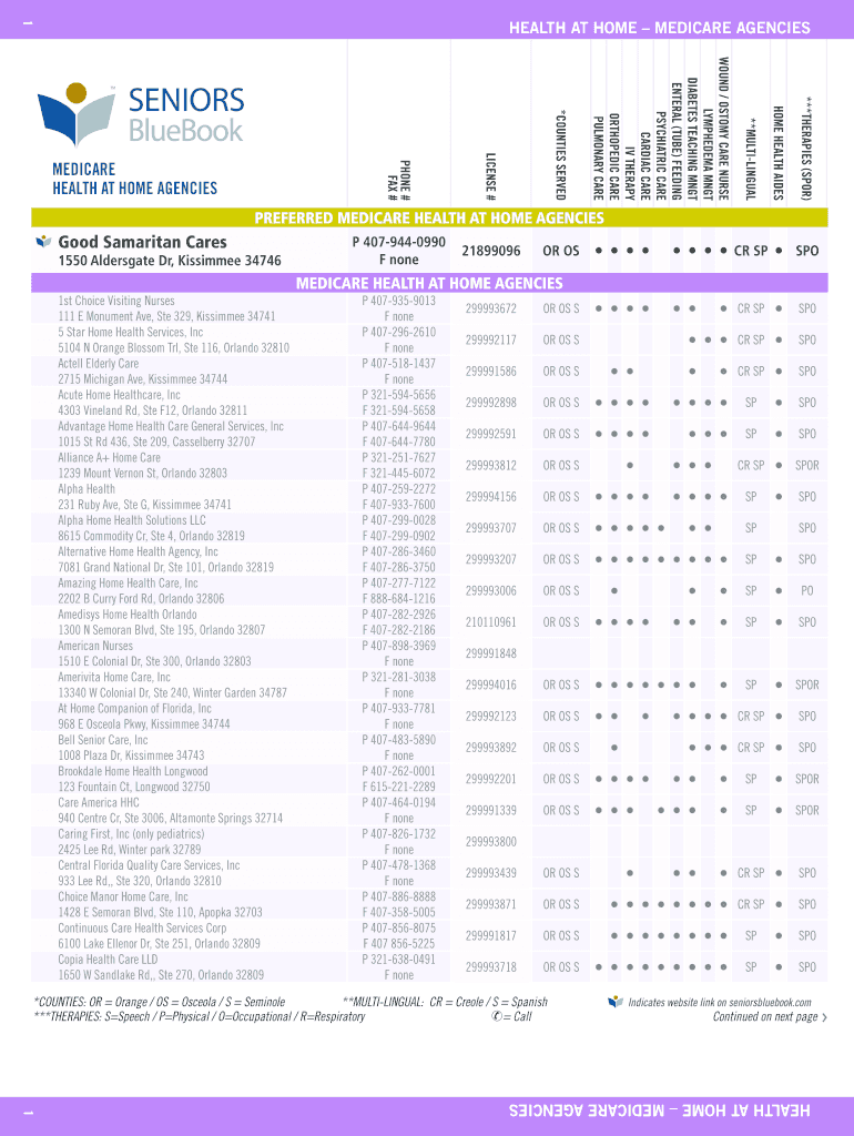 1HEALTH AT HOME MEDICARE AGENCIES***THERAPIES (SPORT)HOME HEALTH AIDES**MULTILINGUALWOUND / OSTOMY CARE NURSE LYMPHEDEMA MNG DIABETES TEACHING MNG ENTERAL (TUBE) FEEDING PSYCHIATRIC CARE CARDIAC CARE