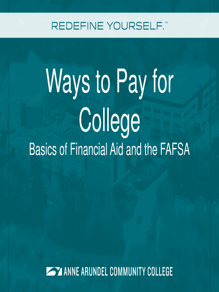 Ways to Pay for College Basics of Financial Aid and the FAFSA will talk about: Federal student aid State student aid from colleges Scholarships from other sources will answer: What is financial aid?
