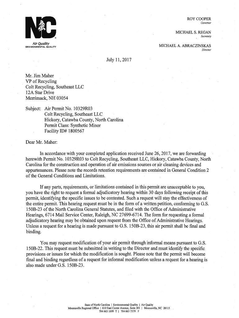 Secretary QualityMICHAEL A. ABRACZINSKASENVIRONMENTAL QUALITYDirectorJuly 11, 2017Mr. Jim Maker