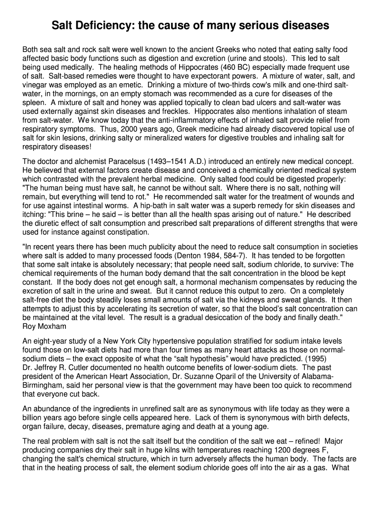 If there are any specific questions or prompts related to the cause of salt deficiency, provide detailed information as requested.